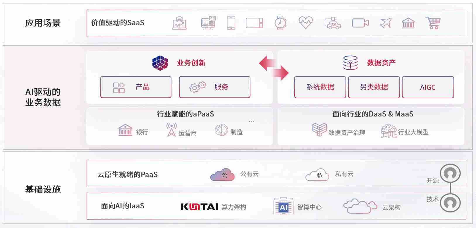 数字时代,,,,围绕企业数字化转型的关键要素,,,z6尊龙数码开创性的提出数云融合战略和技术体系框架,,,着力在云原生、、、、数字原生、、、、AI原生和信创产业上架构产品和服务能力,,,,为处在不同数字化转型阶段的快消零售、、汽车、、金融、、、、医疗、、、政企、、、、教育、、、运营商等行业客户提供泛在的敏捷IT能力和融合的数据驱动能力,,构建跨界融合创新的数字业务场景和新业务模式,,,助力企业级客户建立面向未来的核心能力和竞争优势,,,,全面推动社会的数字化、、、智能化转型升级。。